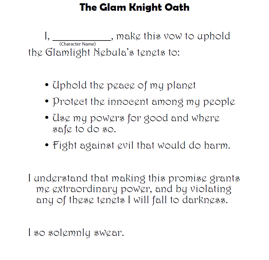 Glam Knights was built with inclusion of marginalized and minority communities in mind for purposes of the “Spirit of Rebellion TTRPG Game Jam” on itch.io which ran from July 15th to August 31st, 2025.